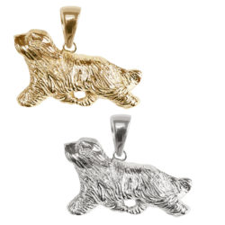 Bearded Collie Trotting in 14K Gold or Sterling Silver Charm, Necklace, Pendant