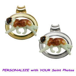 Saint Bernard Trotting in Leash with 14K Gold, Sterling Silver, or Combo